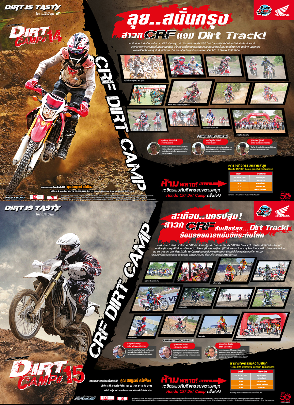 สาวก CRF กรุงเทพฯ นครปฐม สับเกียร์ลุย...Dirt Track! ย้อนรอยการแข่งขันระดับโลก >>> ดาวน์โหลดรายละเอียดกิจกรรม Dirt Camp ครั้งที่ 15 , 16