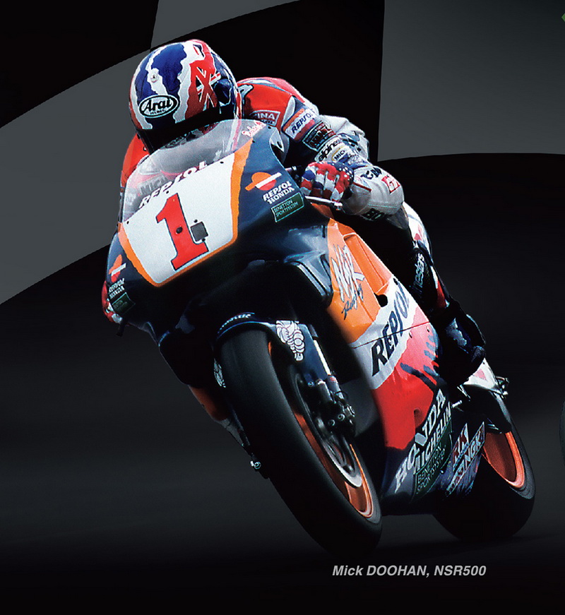 Mick (Micheal) Doohan นักบิดชาวออสเตรเลีย Superstar ขวัญใจแฟนๆ ทั่วโลก สามารถคว้าแชมป์โลกได้ถึง 5 สมัย ให้กับ Honda ในรุ่น 500cc ด้วยรถ NSR500