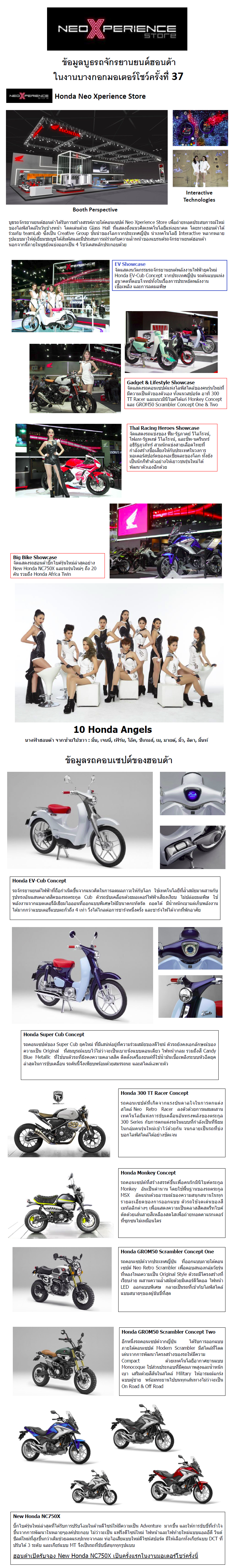 ข้อมูลบูธรถจักรยานยนต์ฮอนด้า ในงานบางกอกมอเตอร์โชว์ครั้งที่ 37 จัดแสดงระหว่างวันที่ 23 มีนาคม – 3 เมษายน 2559